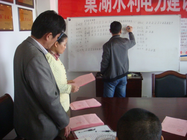 巢湖水利電力建設(shè)有限公司換屆選舉股東會于2015年4月12日9時(shí)在公司會議室召開,會議由宋國華同志主持。經(jīng)現(xiàn)場股東投票表決產(chǎn)生董事如下:宋國華、劉來發(fā)、李業(yè)中、曾勛德;由董事推選宋國華為董事長。經(jīng)現(xiàn)場股東投票表決產(chǎn)生監(jiān)事為李良潤。