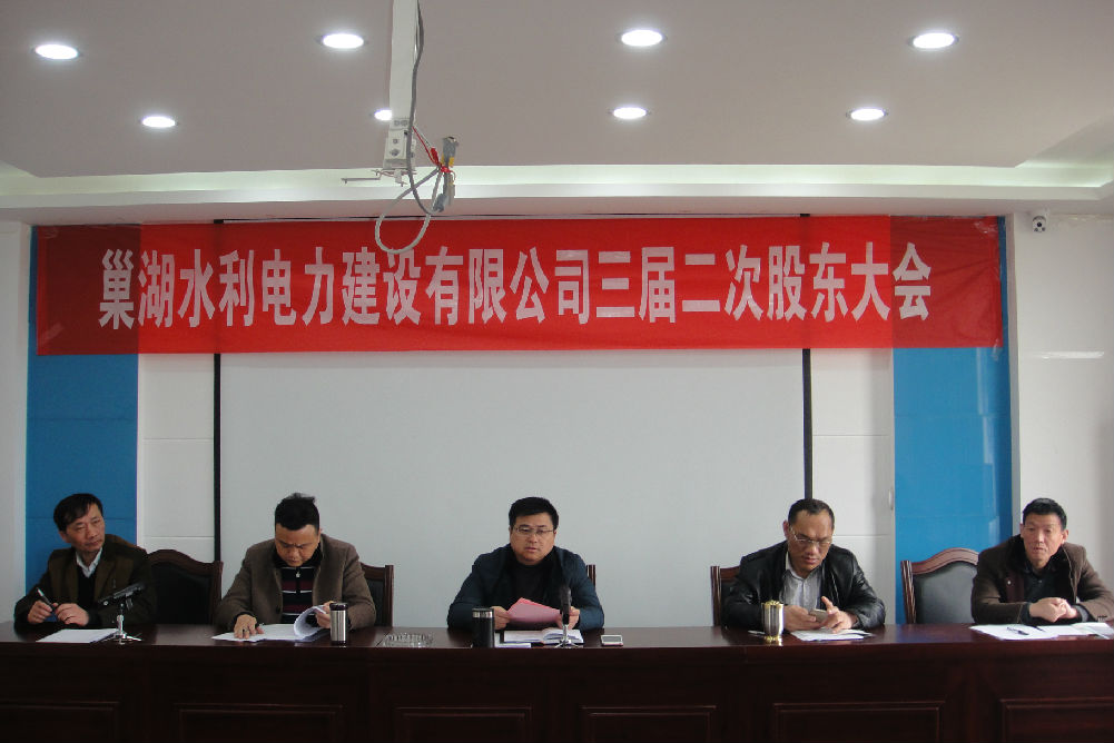 巢湖水利電力建設有限公司三屆二次股東大會,于2017年3月25日9時在公司會議室召開,會議由宋國華同志主持。會議主要議程,先主持人宣布到會人數和相關事項,其次,由董事長宋國華、監事李良潤、財務部部長王平分別作2016年度董事會工作報告、2016年度監事工作報告和2016年度財務工作報告。會議其他事項是就股東提出的意見和建議,在大會上討論、表決。