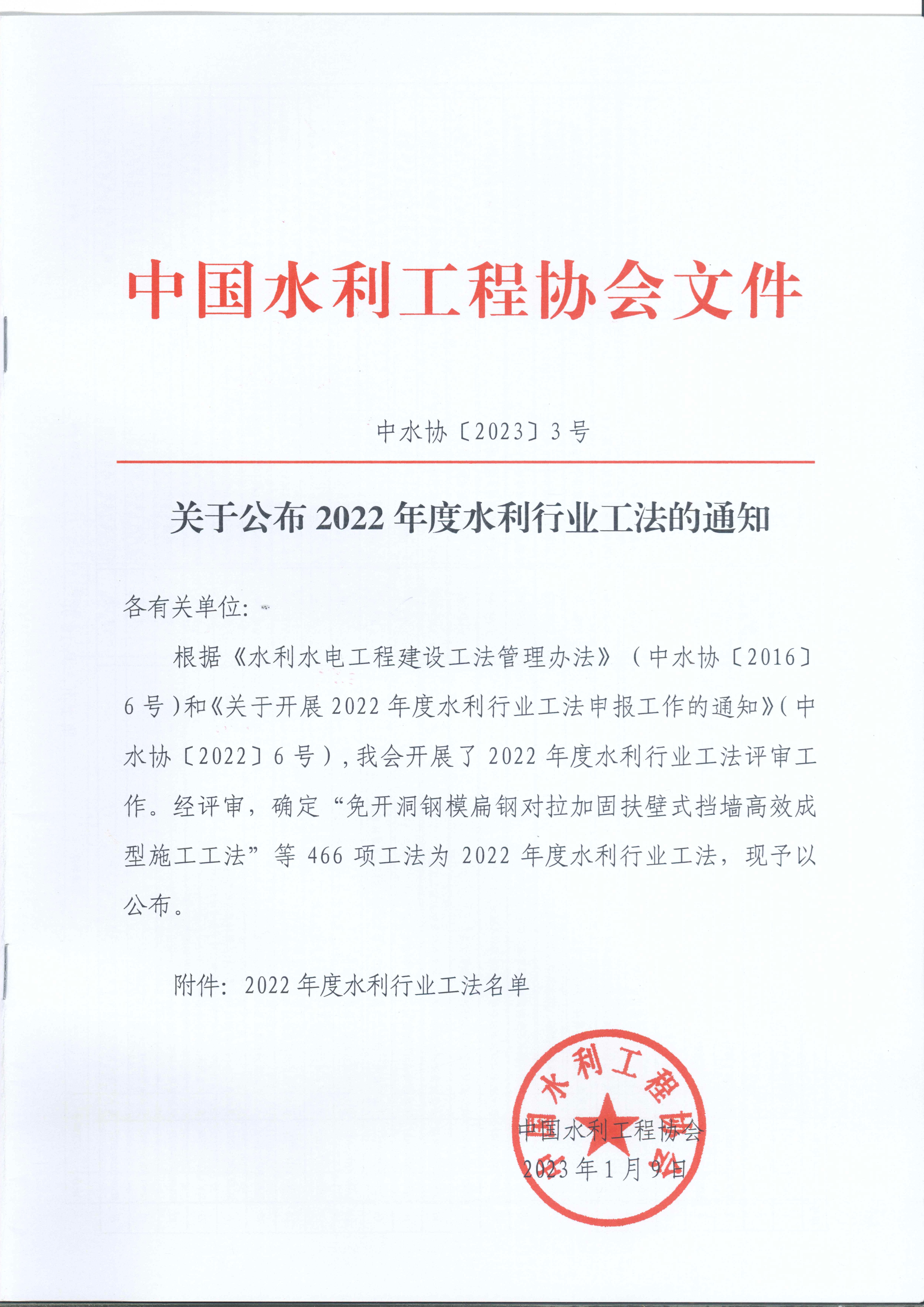 轉發關于公布2022年度水利行業工法的通知
