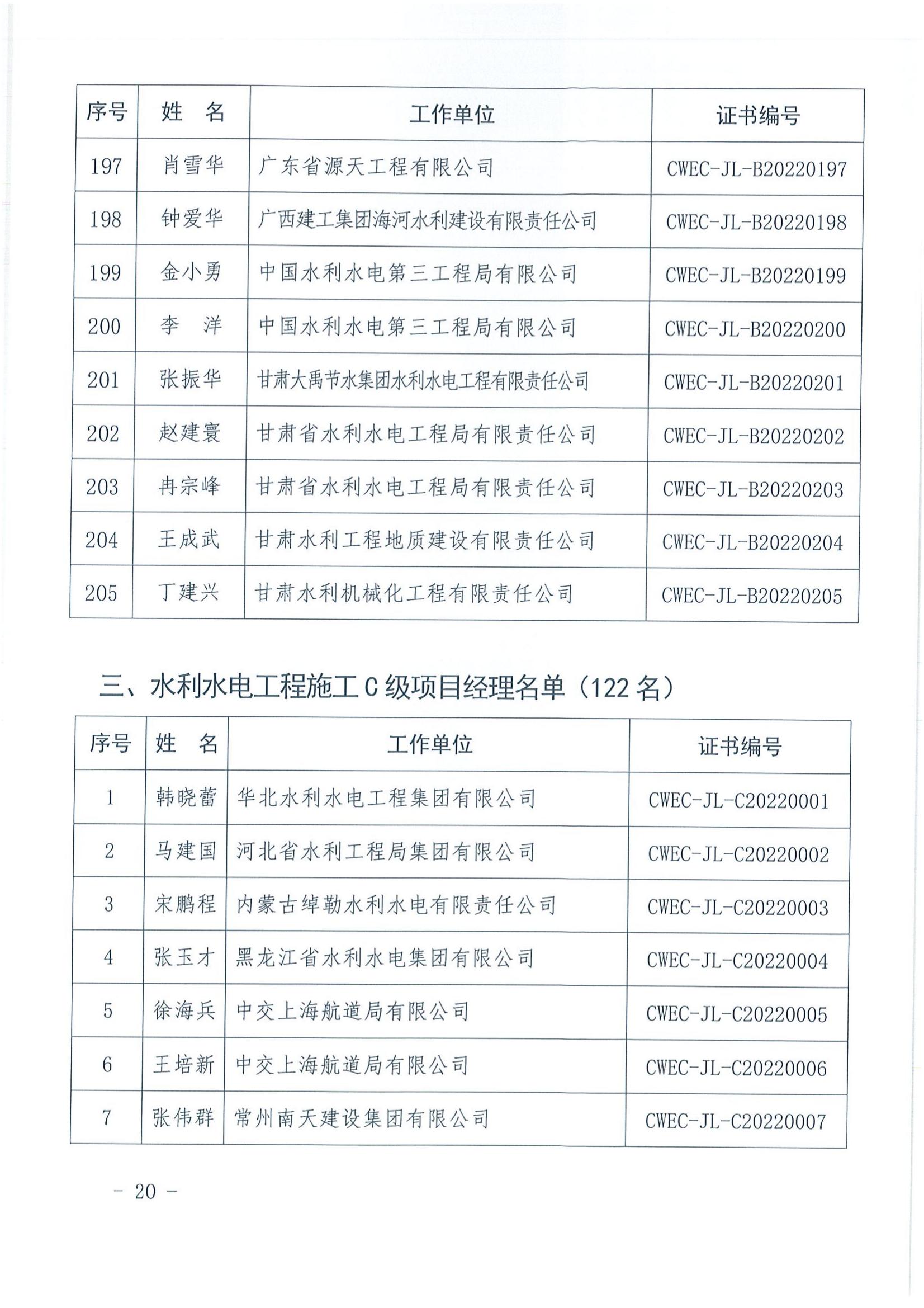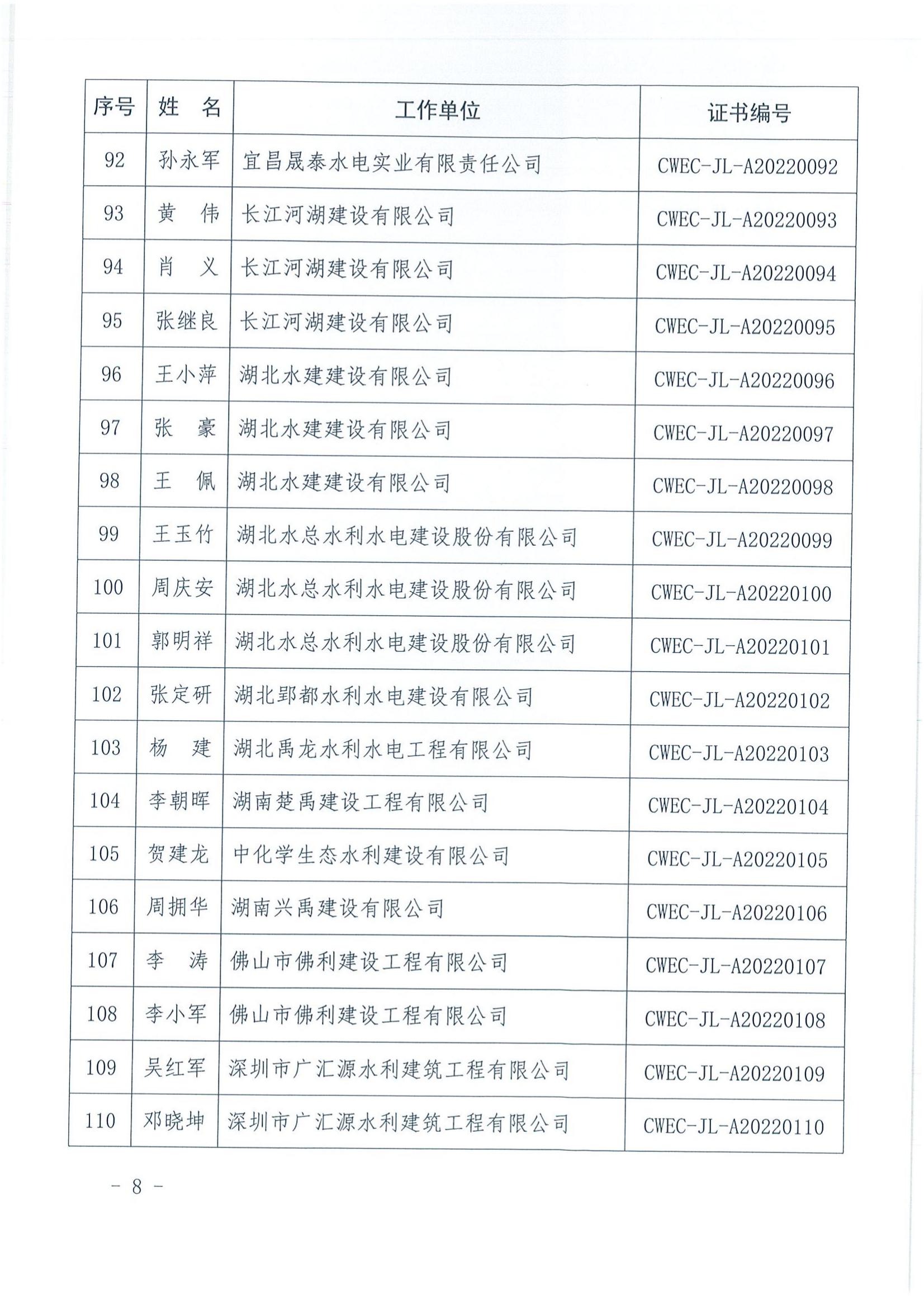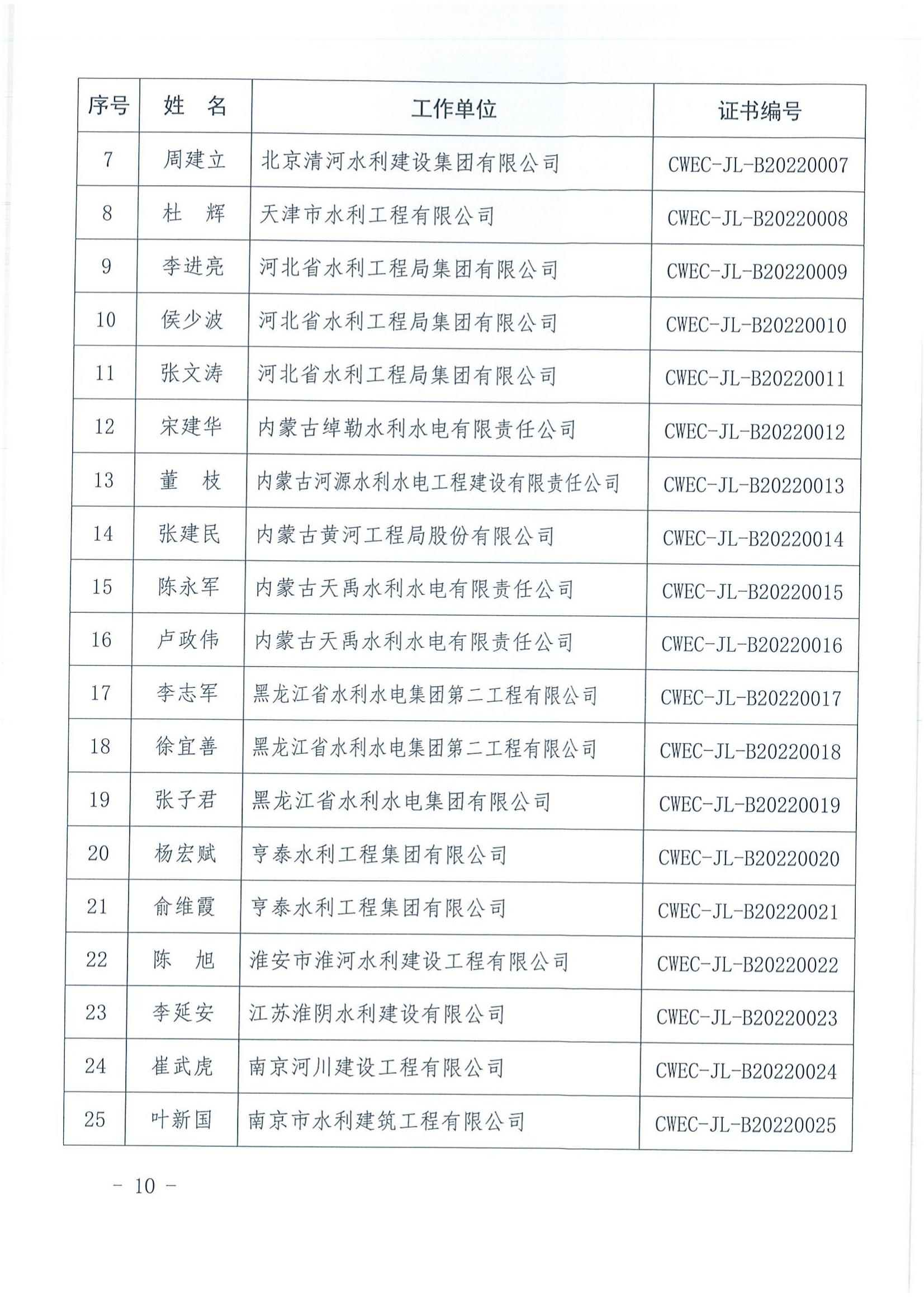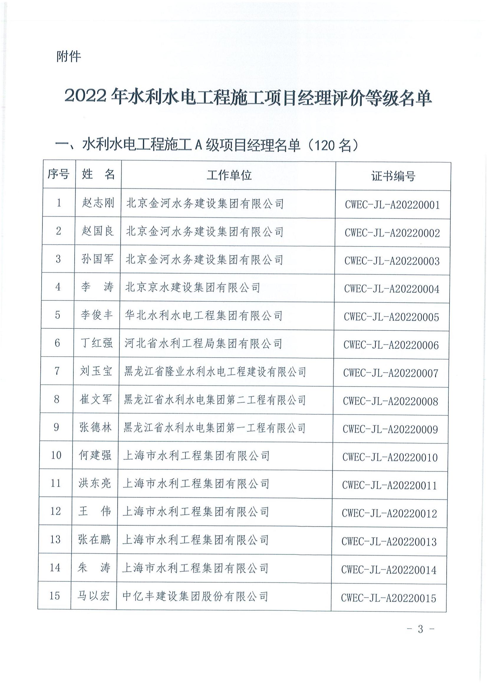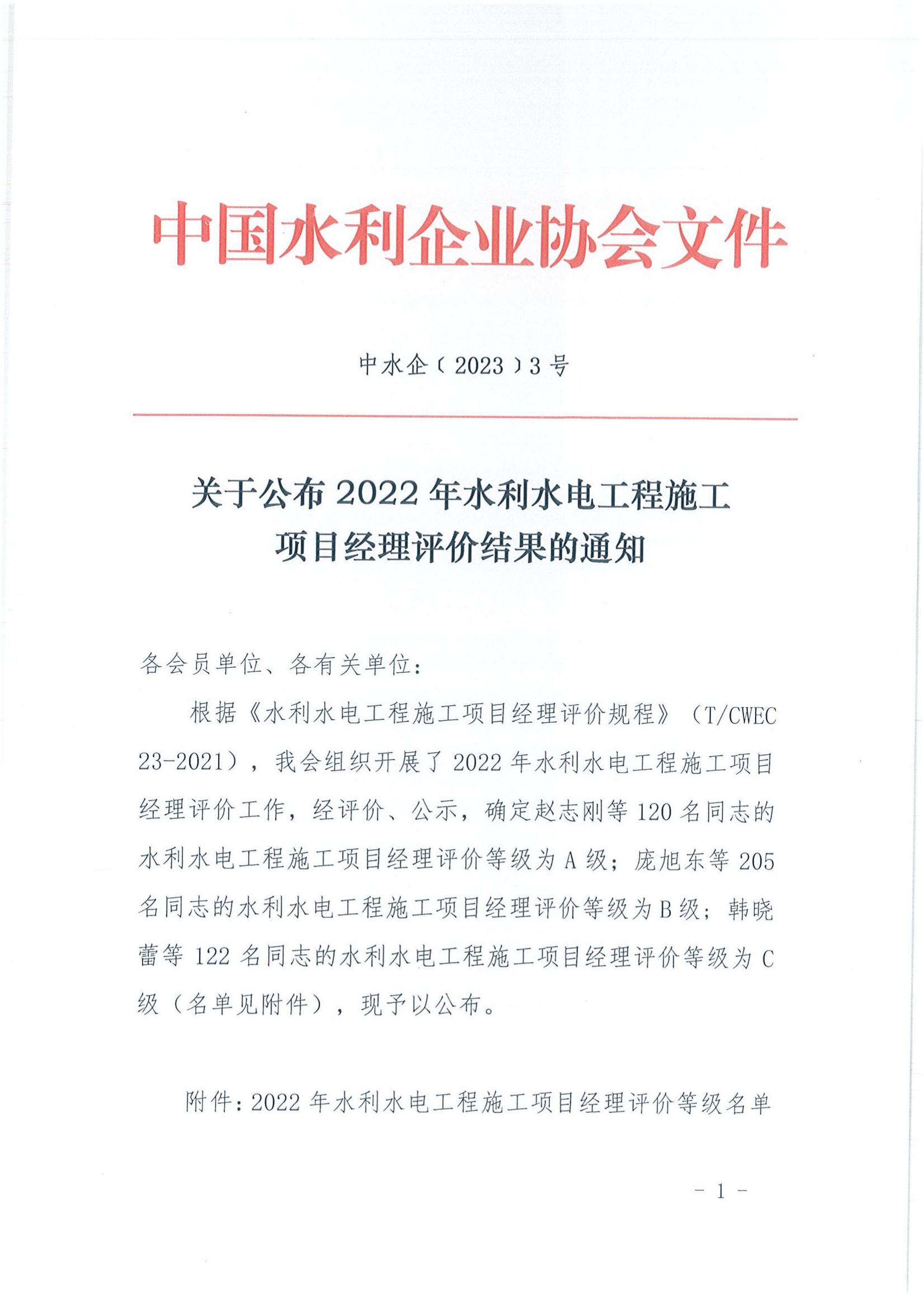 轉發關于公布2022年水利水電工程施工項目經理評價結果的通知