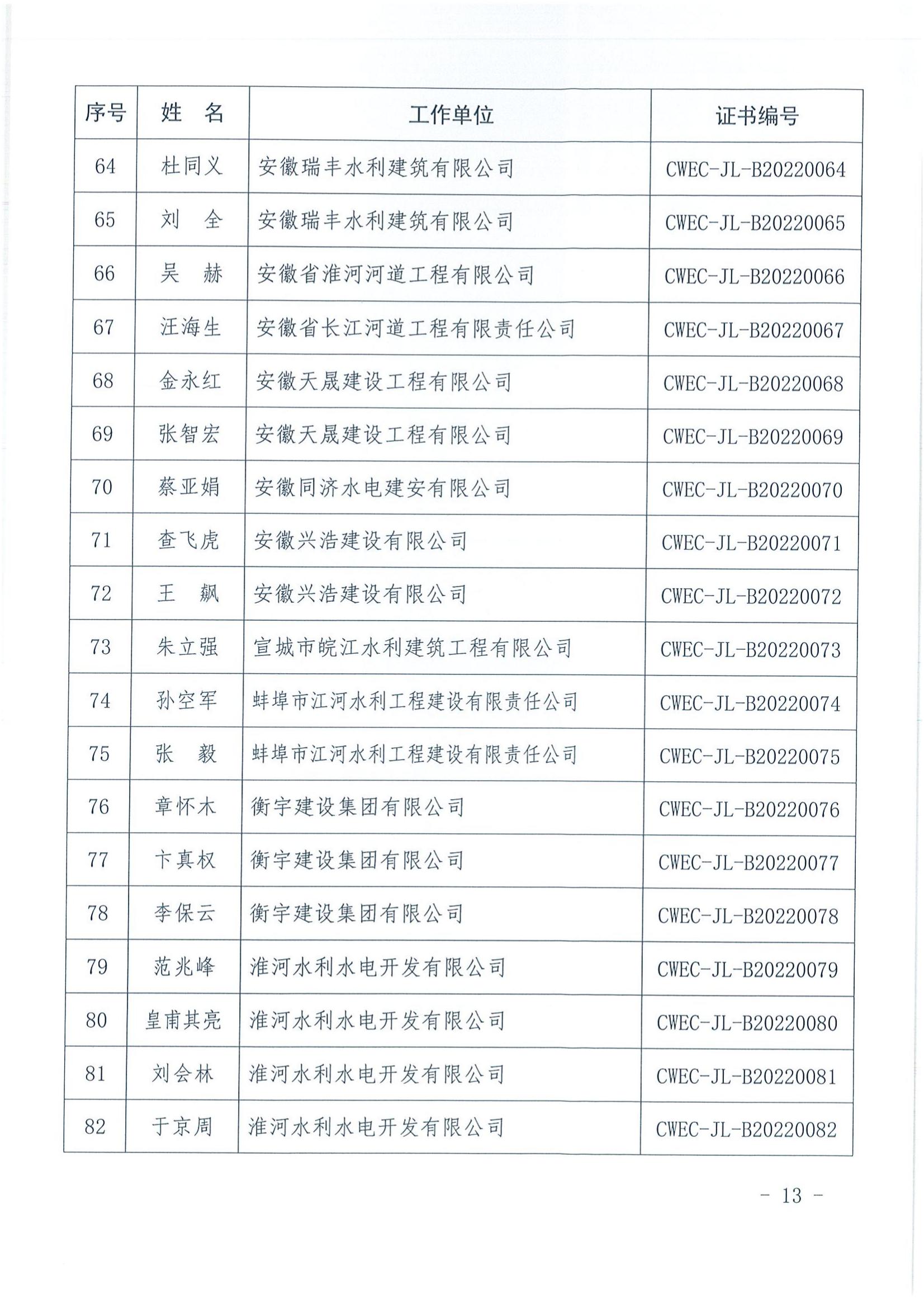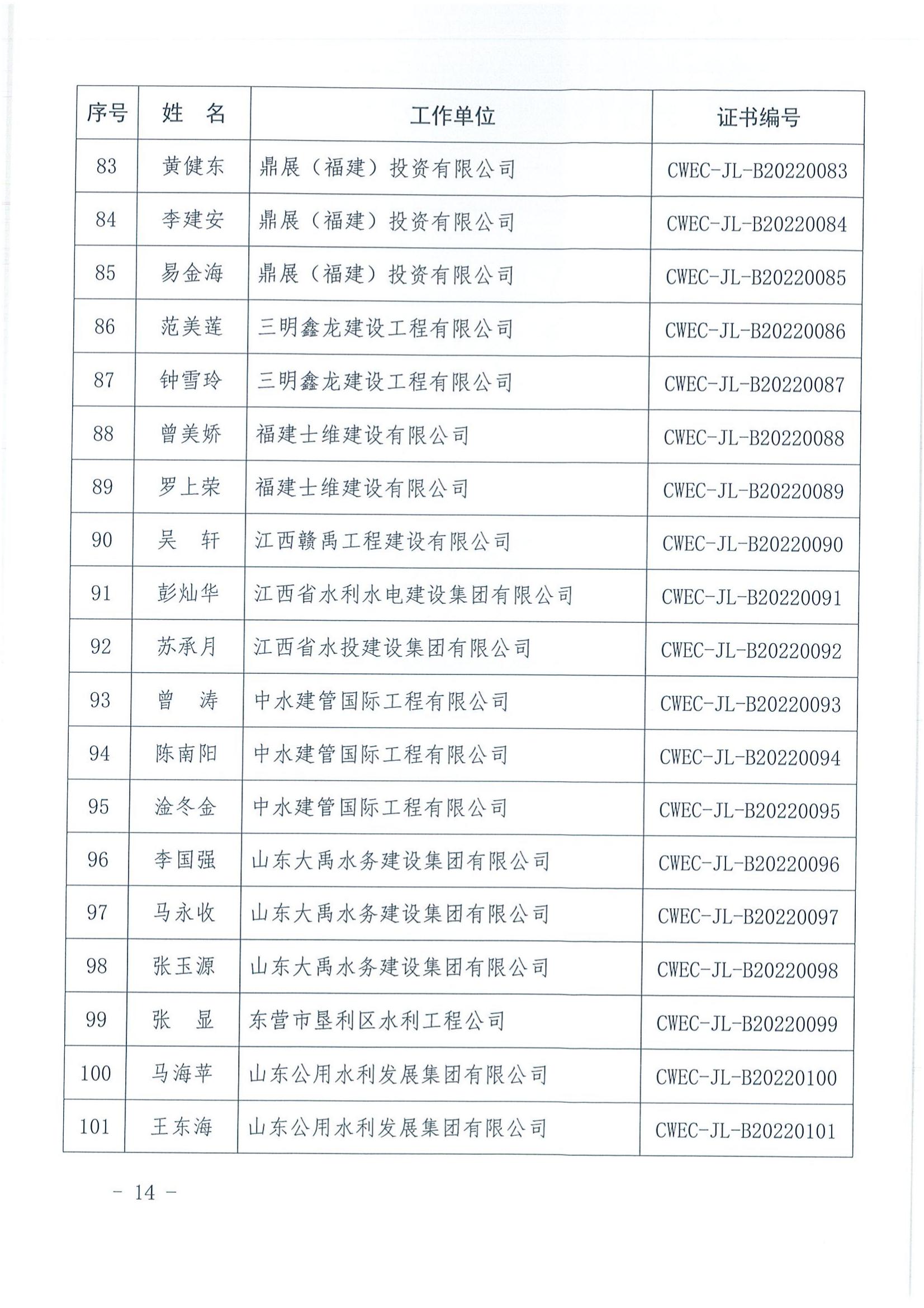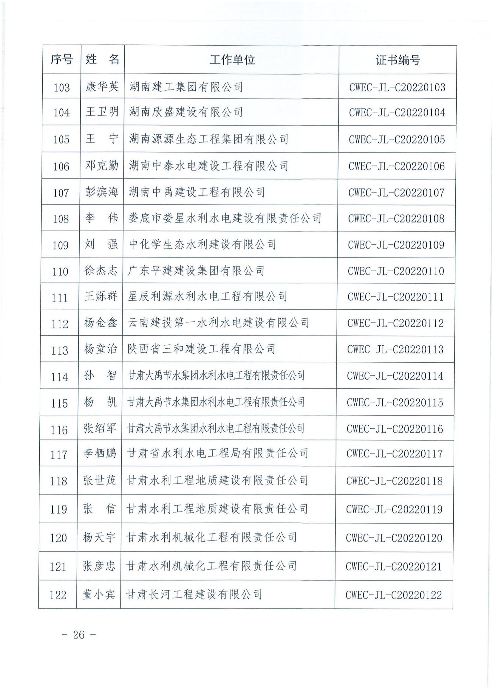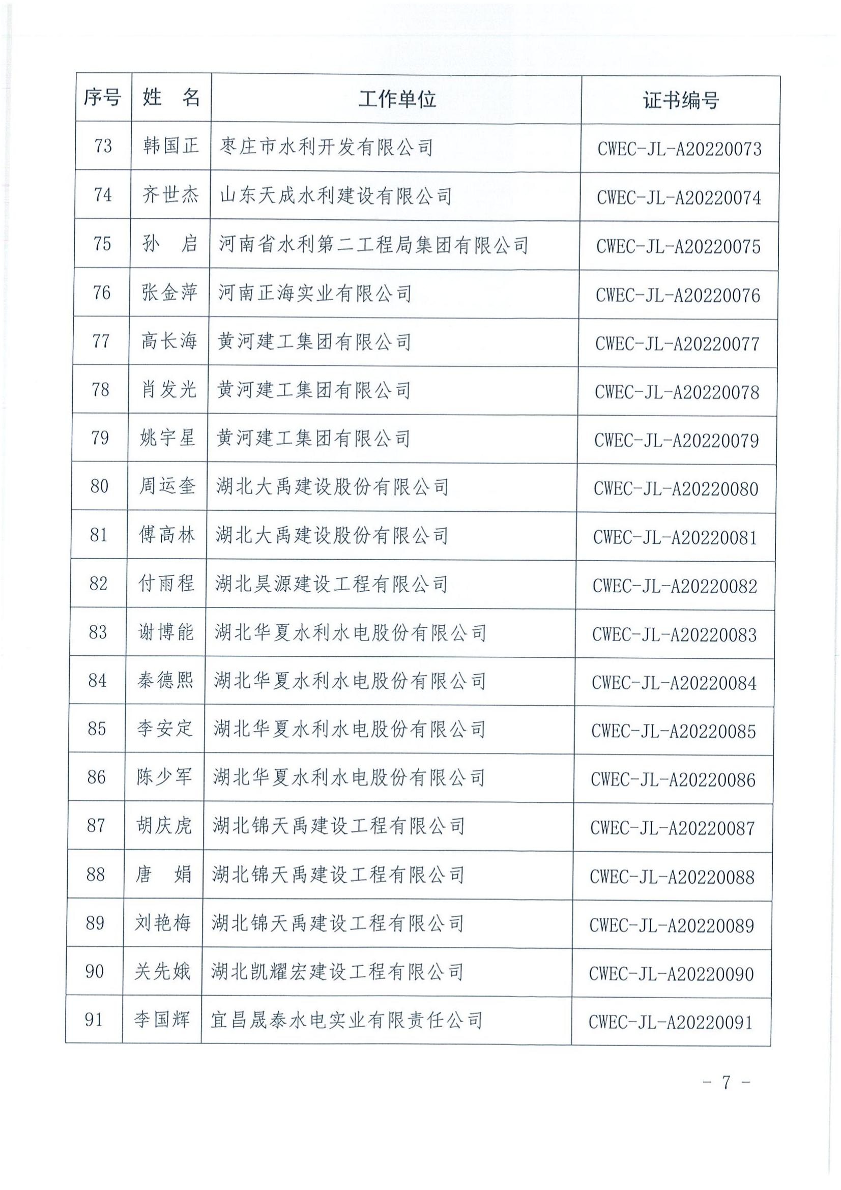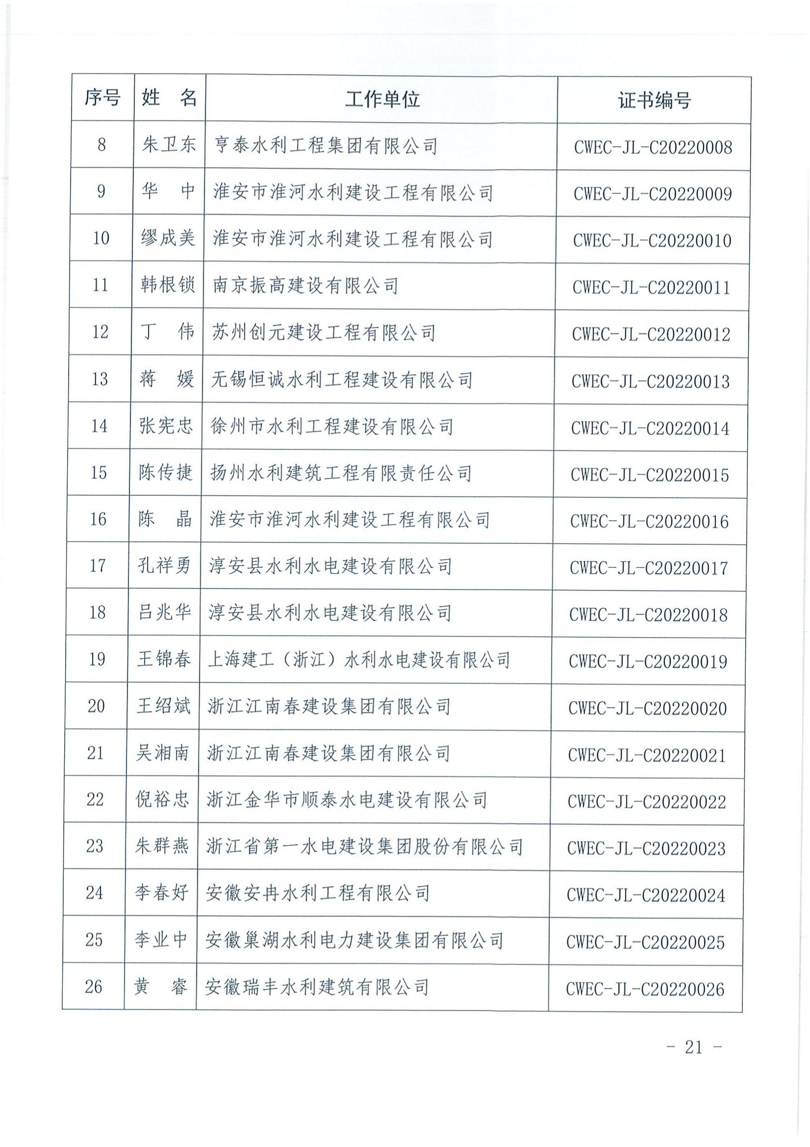 轉發關于公布2022年水利水電工程施工項目經理評價結果的通知