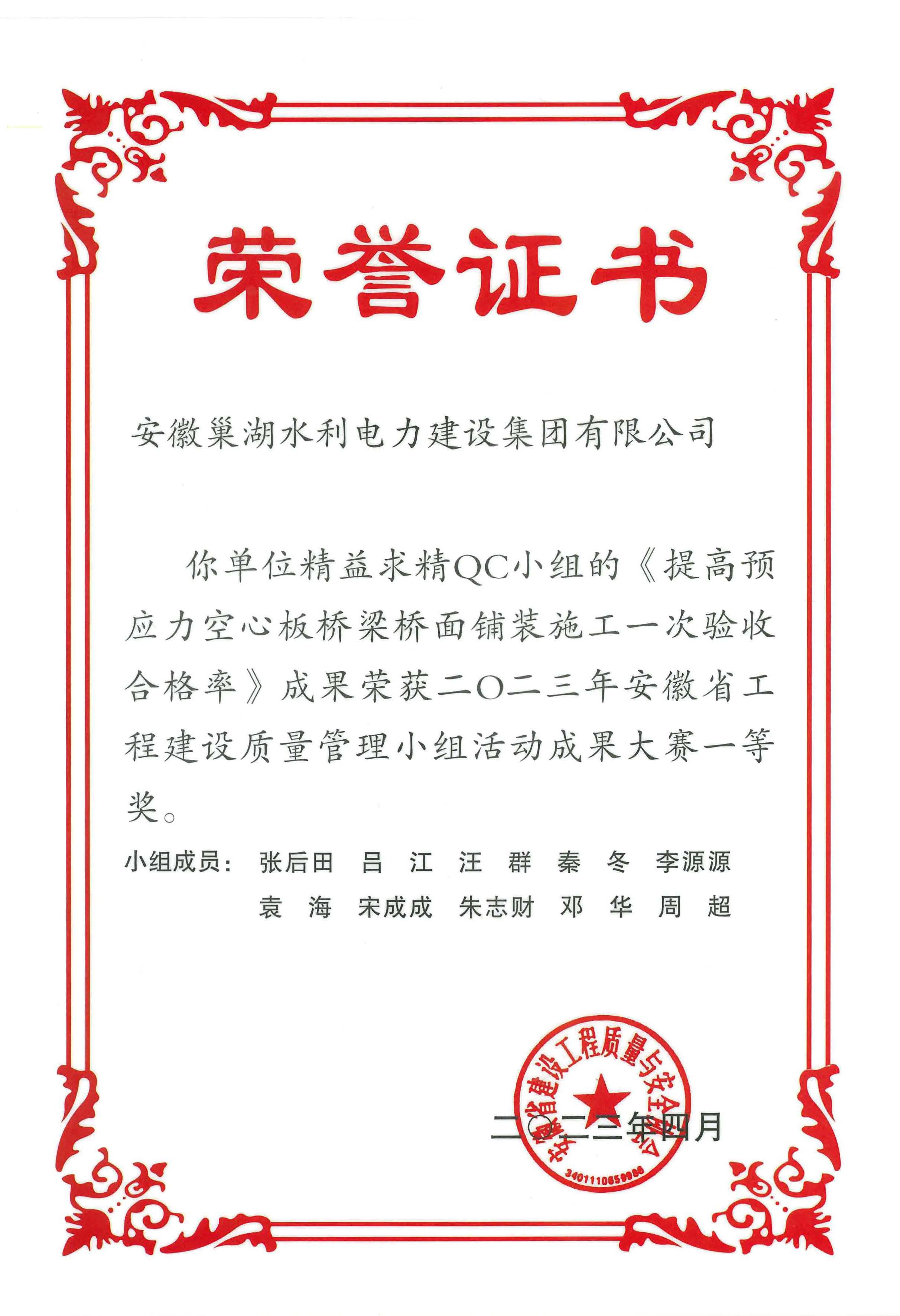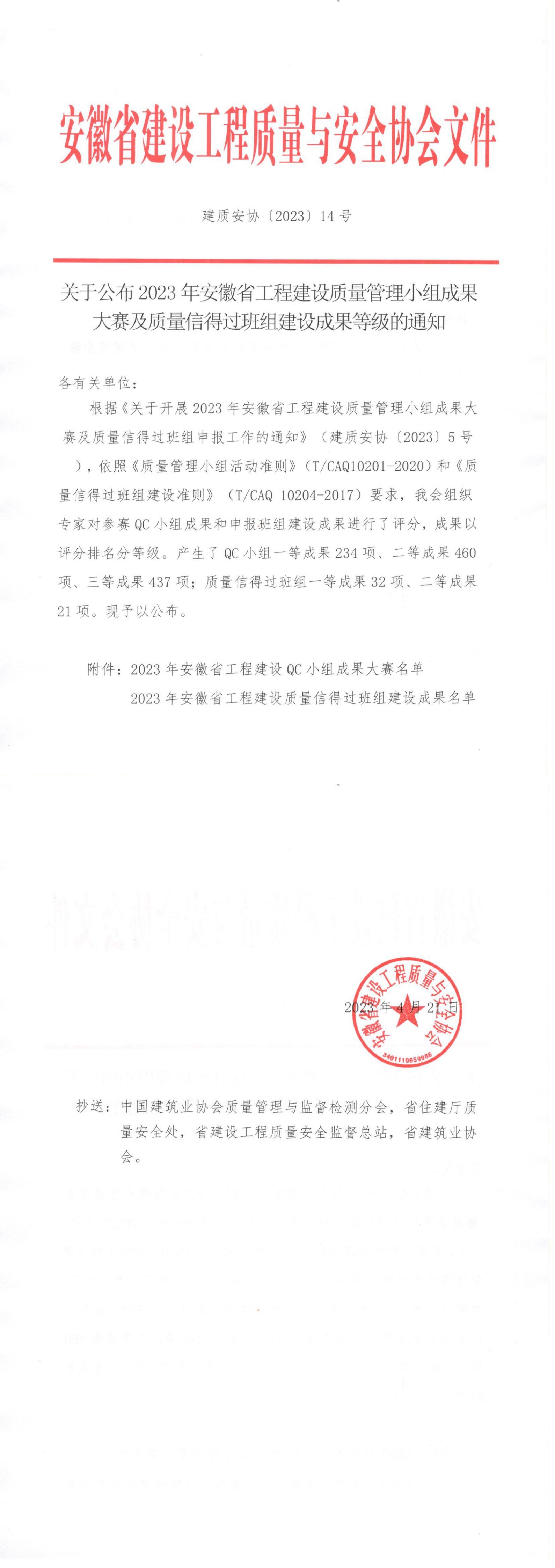 附件:2023安徽省工程建設(shè)QC小組成果大賽名單
