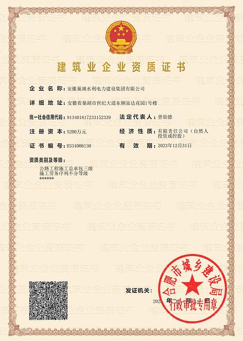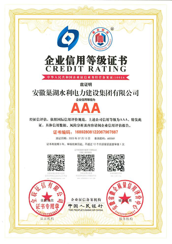 安徽省市政施工企業(yè)信用評價(jià)AAA企業(yè)